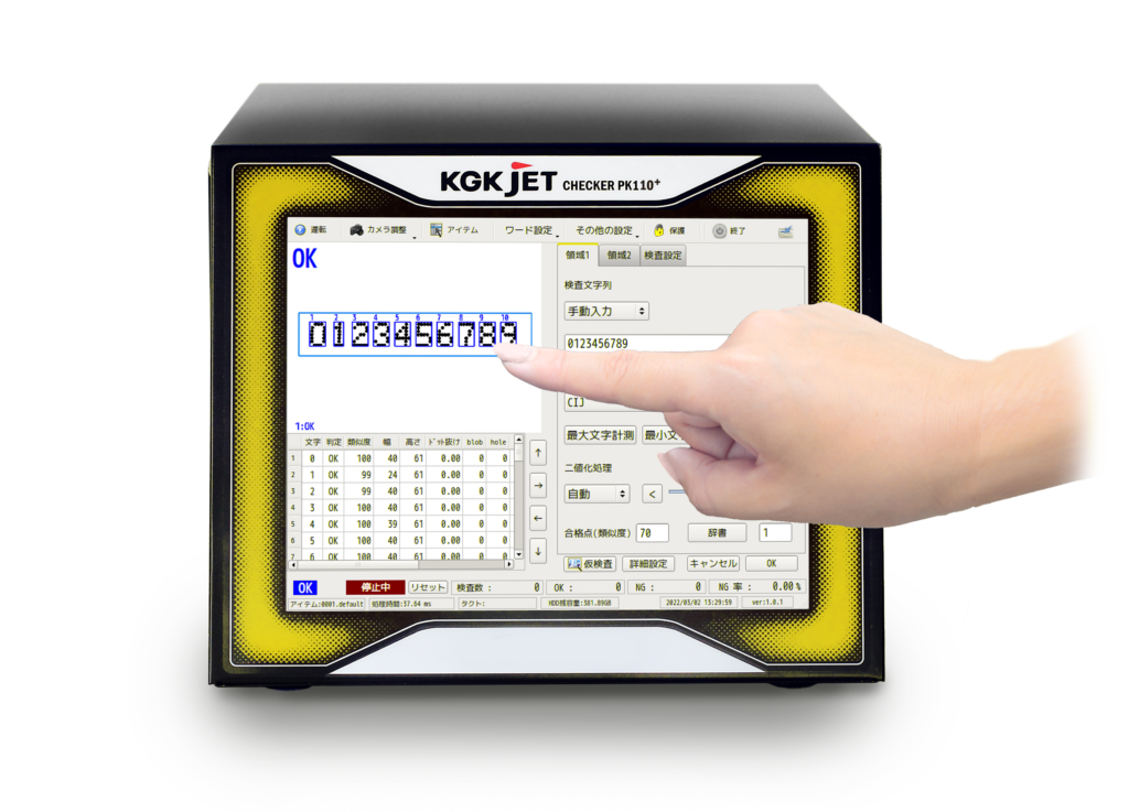 - PK110+なら8インチモニターで検査設定も一画面表示できるので装置の設定状態が一目でわかります。